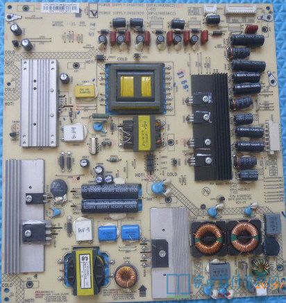 接修一台康佳42MS11DC液晶电视,客户描述故障是有时开机刚显示康佳商标便黑屏,反复开机多次有时能正常收看。拆机通电检查,刚开机时5V,12V,100V输出正常,屏正常点亮。几秒后屏熄灭,测12V,100V消失,但5V,3.1V开机电压正常,电源指示灯还处于开机状态。由此可以判断主板应该是正常的,问题出在以Q0765为核心的恒流电路和灯条保护电上。本着先简后难思路,先断开Q701灯条保护,故障不变,问题缩小到以Q0765为核心的电路上。是什么原因引起保护呢?仔细观察电路发现Cw976已经发黑,顶部己开裂开。拆下检查已开路,换新471/1KV后电视恢复正常。