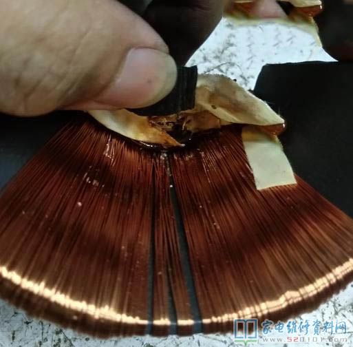 拆下不正常这块,找到断线点,原来是这个铁片生锈,刚好这块碰到漆包线导致锈蚀点而断线。