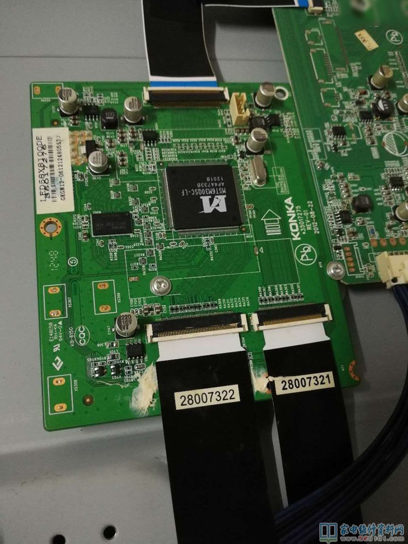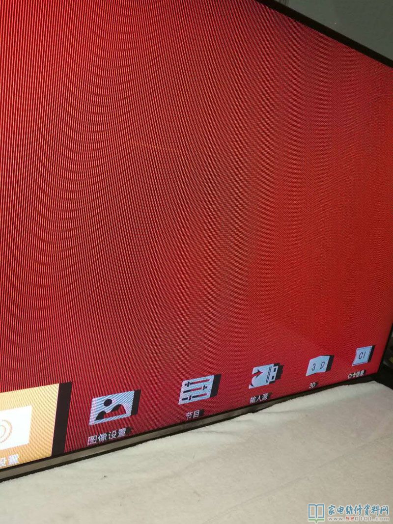 维修一部康佳58寸液晶电视,型号是LED58X8100DE,这台机器的故障是偏红色(常白屏),常白屏偏红色说明红色控制不到,心想问题大了会不会是主板大心片引起,或者逻辑板主芯片引起。