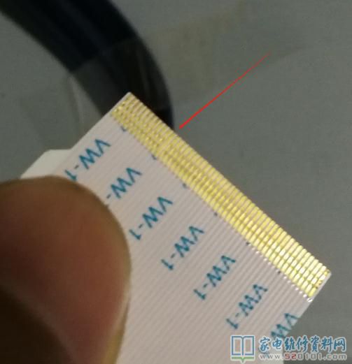 按照先简单后难的原则,先从排线开始看有没有接触不良,把逻辑板排线重装一篇开机用手碰一下没反应,再到倍屏板拆装用手触碰,当触碰到28007322排线图像正常了一下又偏回红色,拆开排线一看第十二脚跟排线插座接触不良,而且排线铜片没有压痕(图片红色箭头位置),拿根细针把排线插座里面的铜片加工一下装上后,开机画面正常。