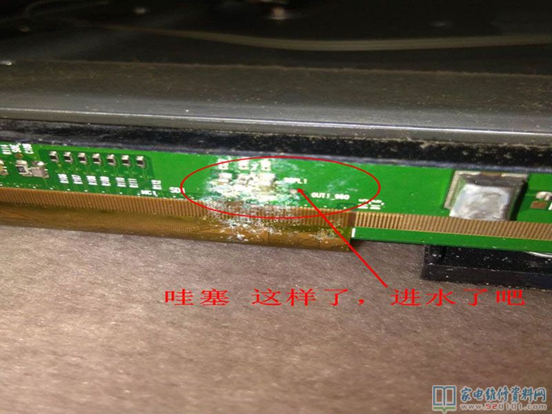 看来是左边屏边板有毛病,或TAB坏。想到网上有什么刀割法,垫纸法、效仿垫纸法试,结果都不行。没办法,只有把屏下掉看看,结果发现有新的状况。