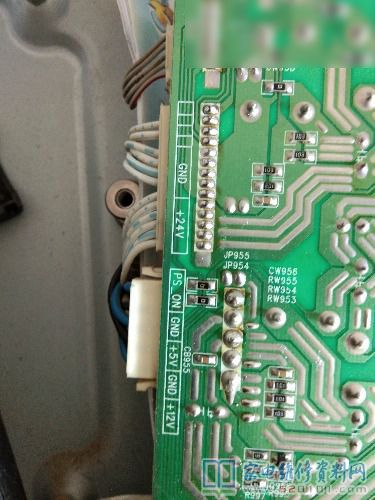 用户打电话说他家里一台康佳LED32IS97N液晶电视图像及亮度不稳定闪烁且自动黑屏关机,遂电话告知机主上门维修不便,需送店面维修。这台电视送来后,接上信号试机,故障马上出现,拆机万用表检查该机电源 +5V +12V +24V 三组电压输出,故障时测电源三组输出,+5v 正常,+12v +24v 输出电压抖动,断开主板供电,接上假负载,故障不变,本着先易后难的思路先测量PFC电压+340v,明显电压偏低,PFC集成块型号为FAN7530 ,测其1脚电压为3.2v, 遂断开其外接电阻RF918后,单独测量线路上的电阻RF918(510K)RF917(510K) RF915(680K)RF908(680K) 发现RF915(680K)已变值为530K ,焊下去除底胶,开一小槽找一680K电阻肚皮朝上更换后,PFC电压恢复380v,试机两天,无异常,机器修复。