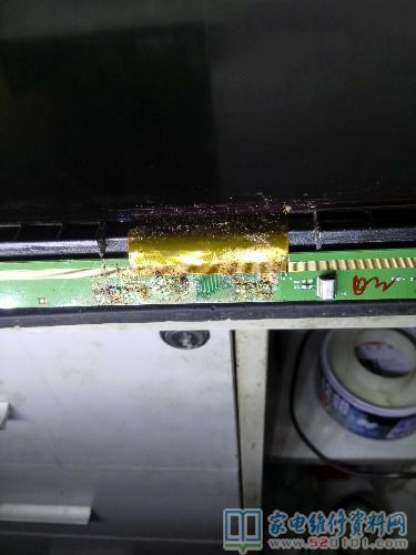 一用户电话说他家电视花屏了,将机器拉回维修部后打开机壳发现该机器进水,一般这样的情况只能送去修屏处维修。今天闲来无事,决定先自己试着修下。拆下屏上铁板,露出边板貌似很严重,用洗板水清洗时切记,记下贴片电阻,电容的位置,一不小心清洗后会发现掉几个零件,清洗完毕后测下电阻是否有开路的,铜箔有无腐蚀开路的,确认无误后。通电开机,一切正常。最后一定要用绝缘漆涂下原来进水的边板处,以防止边板再次氧化腐蚀。