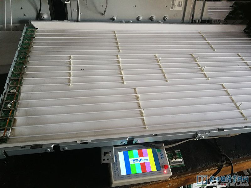 没想到这么复杂,很后悔修他这台机,浪费这么多时间还没搞定,早知道就改LED了,仔细观察灯管亮度虽然全部亮起,比原机还亮,但亮度不是很均匀。试机时间略长一些高压板上变压器烫手,试换高压板背光已不再保护,长时间试灯管一切正常,把灯管和座子全部焊在一起防止虚接再次烧机,装屏,再次烤机,机器修复。