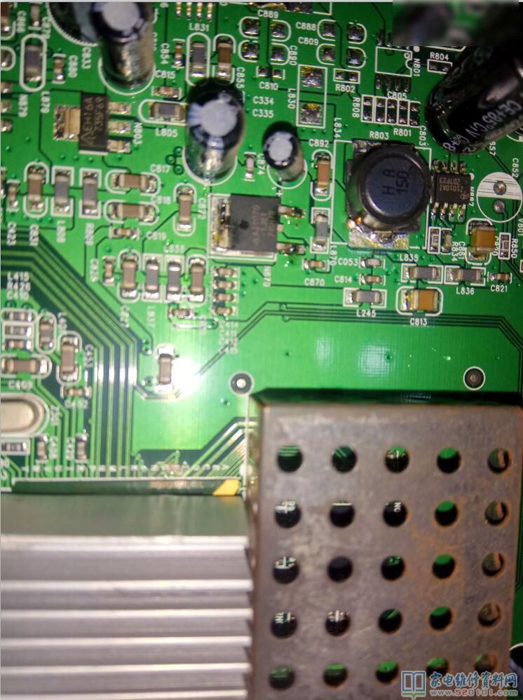 一用户送修一台康佳LC32CT36AC液晶电视,检查电源板各路电压都正常,电容也没有鼓包情况,目标转移到主板,当测量到N870(1.2V稳压块)时有惊喜,输入有2.5V电压,输出没有1.2V电压,用手摸没有温度,应该后面电路没有短路,刚好有块废板上有这个零件,换上去开机久违的画面出现了,试机几个小时工作稳定,一切正常。