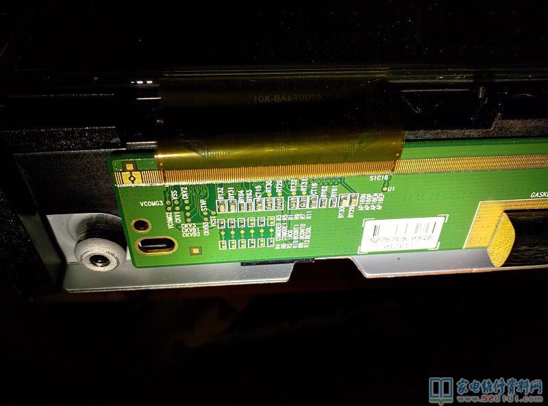 到此基本确定是屏坏了,无奈已经投入了钱进去了,放弃有点可惜,只有一条道走到黑--拆屏了。接下来动手拆屏,拆开之后顿时傻眼了,一体屏,列驱动外置,行驱动内嵌,意思就是压屏机都修不了了。还是不想放弃,随手去掉RIGHT板的排线,发现单独的左半幅画面正常了,单独右半幅或全幅画面都是重影的。