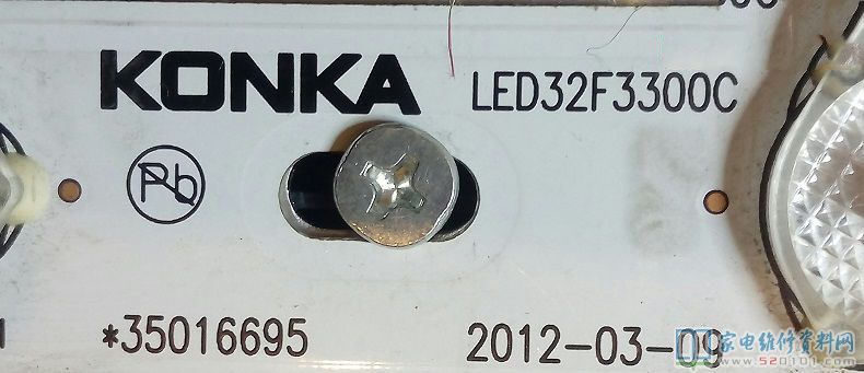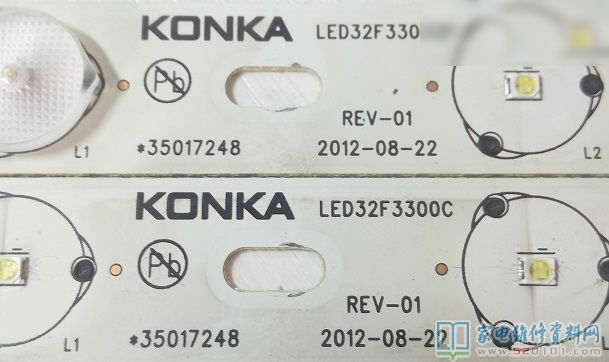 接修一台康佳LED32F2000E液晶电视,故障表现为声音正常,无光。仔细看有康佳LOGO飘动,说明背光不亮。拆机测得CW952两端电压115V,C753两端瞬间电压180V左右,然后回落到105V,百度说R763、R755、R756易损,拆机测量正常,VD751拆机测量也正常,大面积补焊无效,于是考虑灯条可能损坏。小心翼翼拆屏,看到灯条型号为35017248,用二极管档测量灯珠都不亮。手中有35016695拆机灯条,代换后背光点亮,机子完美修复。
