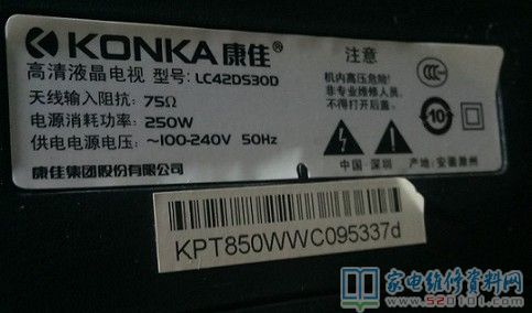 最近接修一台康佳LC42DS30D液晶电视,故障表现为橙灯亮,按键和遥控均不能转绿灯开机,拆机测量电源只有付电源5V,on/off开机端子电压为0,正常开机时应为4点几伏,12v和24v都没有。