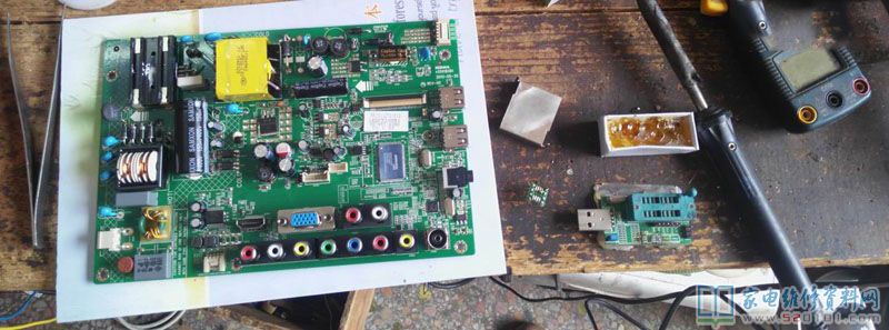 接修一台康佳LED37F3300E液晶电视,故障表现是有时能开机(能正常开机时,就能正常收看也不会关机),有时不能开机,不能开机时指示灯为绿灯开机状态,黑屏无伴音,遥控无法操作,呈死机状态,但是输出电压基本正常,只是背光供电为0V,因为以前修过多例液晶开机死机或卡到LOGO第一屏的案例,怀疑程序问题,本着先简后难,先软后硬的原则,花10元网购了数据,存储器25Q32 数据为4M的,写上数据后,反复开关机试验,一切正常。
