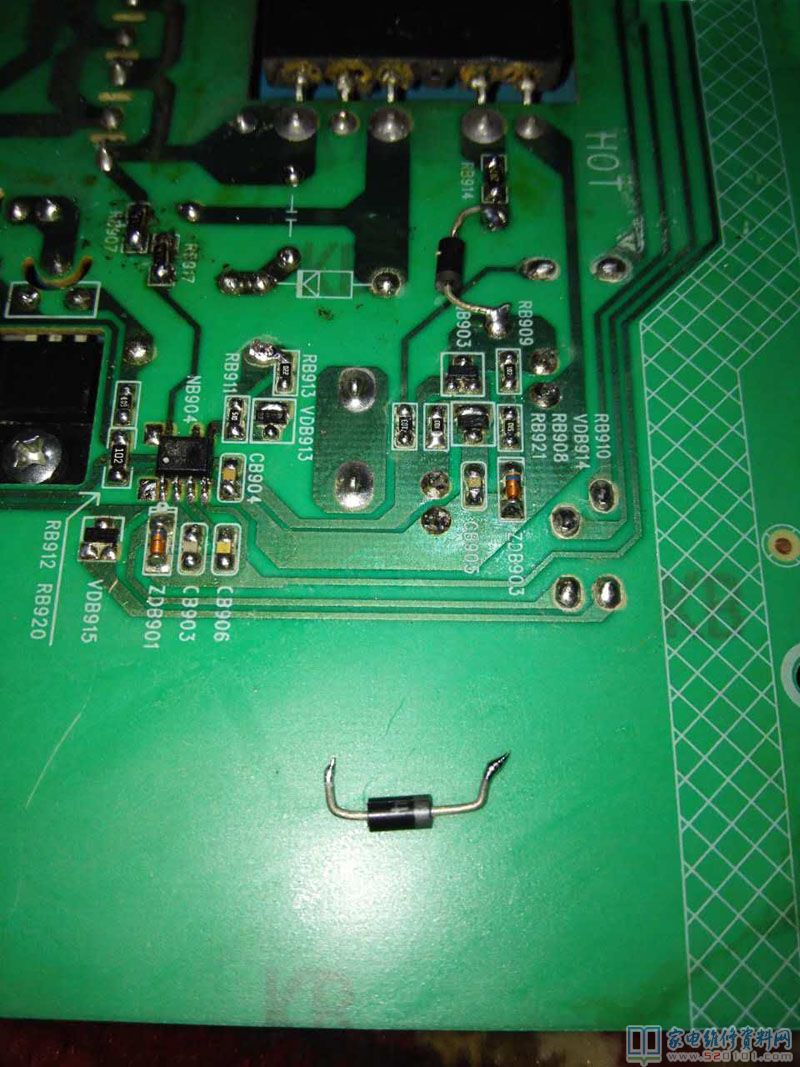 到此基本认定是前级故障,在路检测6755外围零件没发现明显损坏,因手头无相同电路板,无法一一代换,维修再次陷入困境,休息一下接着修,在通电状态检测前级各点电压,偶然测到变压器为6755供电的整流电压在12V以下跳变,对照图纸该脚经三级管降压为6755提供18V 电压应该20V以上才对, 怀疑滤波电容失效,代换故障没变,这回只剩整流二极管,马上代换,通电终于输出稳定12V,装机完全正常,换下的二极管用数字表测量反向无穷大 正向0.89 对比好的0.47 相差不大却让我走了很大的弯路。