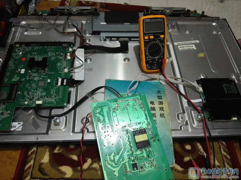接修一台康佳LED40X6000DE液晶电视,故障表现为红色指示灯闪烁不开机,开盖检查电容无鼓包,也没发现虚焊,测量输出主电源12V待机4V到6V不停跳变,摘板用两个电阻从12V输出端分压5V接sp/on,通电输出8V到12V不停跳变,再测量6755各脚电压,除第一为稳定3V,其他脚随输出电压在基本正常和偏低之间跳变,看网上的同行们反应6755很容易坏,手头刚好有一个,马上换掉,通电还是老样子,感觉有点无从下手了,现在连电源稳压是前级故障还是后级故障都没搞清,马上取下本机稳压光耦,随手拿了一个单独输出12V的开关电源板用两根线和本机12V并联在一起,再把单独电源的光耦输出用两根线接在本机去掉光耦的焊点上,通电任然是8V到12V跳变。