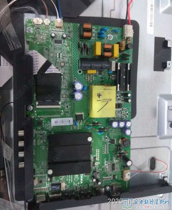 接修一台康佳LED43K1000A液晶电视,故障表现为不通电,此机为35023310三合一板,开盖检测电源电路4A保险熔断,CW912 101烧爆,电源调整管击穿,型号K6A65D,对电源电路原件逐一进行排查发现VDW908击穿,查资料得知稳压值6.8V。电源集成块8671A。网购K6A65D 8671A(为了万无一失换新)元件,6.8V稳压管在老式彩电上拆得。电源次级没有发现坏件。换好所坏的元件,检查无误,开机正常收看。至此故障修复。
