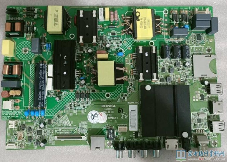 接修一台康佳LED49R710液晶电视,故障表现为遭雷击送修,插电开机三无,拆机检测电源部分保险断了,开关管7N65击穿短路,电源驱动6脚模块损坏(型号F9L38),还有些小阻容和二极管一并击毁,抱着试一试心里修复成功,该机是三合一板子,板号是35022344,6脚IC芯片F9138手里没有,看功能脚用OB2273代换成功。