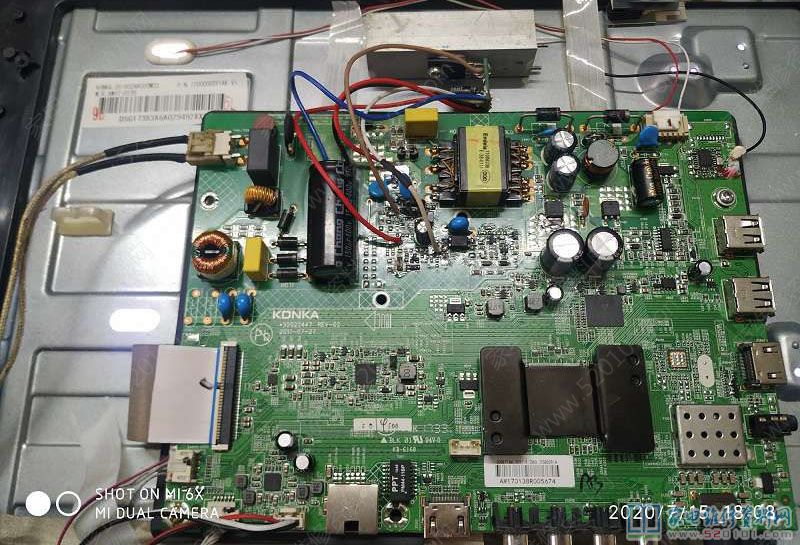 电视是倒是能开了,但是模块上面的5脚模块发烫厉害,加散热片也一样烫手。经查,此通用模块是用的DM0465电源后模,功率为45W 但是这机器是55W难怪烫手。