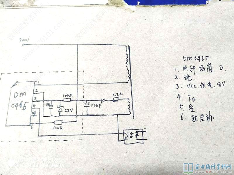 这可怎么办?重新买大功率通用模块?既然这货是用DM0465,那么它一定也有大功率的。经过对比电路,DM0465和CQ0765/CQ1265电路基本一样,两者就3脚供电和5脚的区别。既然一样就改造吧,既然功率小了就拿个170W的。具体改造请对比下面两图。