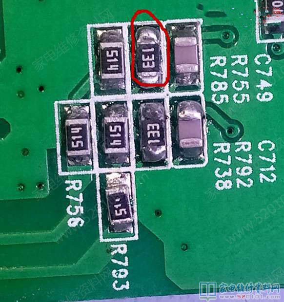 接修一台康佳LED42M2800PDE液晶电视,故障表现为开机屏闪,屏亮了马上关机又开机反复如此,测主电压12V至0V变化,经查是保护电路的电阻R755开路引起的,更换电阻后故障修复。