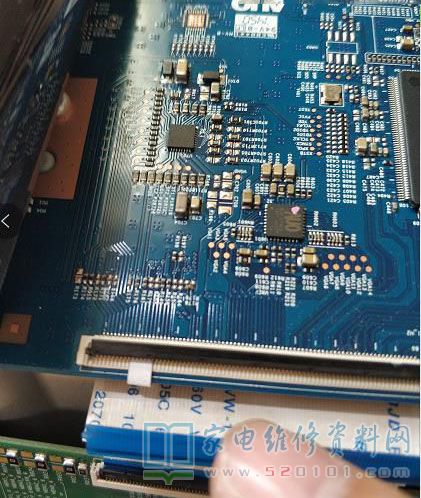 接修一台康佳KKTV 50寸液晶电视,故障表现为下面屏花屏,拆机逻辑板发现断开左边的屏线,右边显示正常了,不花屏了。马上试了下“隔离大法”,左边的屏线,用5mm的纸从第一根线开始屏蔽,到第4根开始有反应了,把纸条一点一点的剪,剩1根,在测试到第九根线正常了,不花屏了,把第九根线屏蔽后,正常了,不过,后来测试二天发现,隐隐约约还是有点白线问题,不过不影响使用。肉眼离远后,也看不出问题,高清4k更是没有出现这些隐白线。