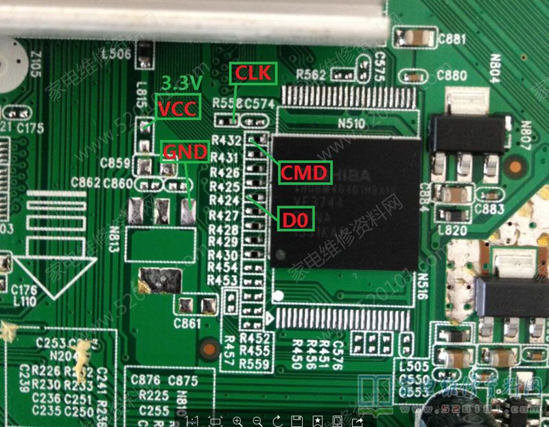 康佳液晶35017819主板EMMC接线点位图 2022-03-31 19:19:37 阅读 864 次 评论 0 条 摘要: 康佳液晶电视采用35017819主板的EMMC飞线读写点位CLK、CMD、D0、VCC、GND如下图所示,仅供参考。 康佳液晶电视采用35017819主板的EMMC飞线读写点位CLK、CMD、D0、VCC、GND如下图所示,仅供参考。 版权声明:本文为转载文章,版权归原作者所有,欢迎分享本文,转载请保留出处! 点赞 分享: PREVIOUS:康佳液晶35018270主板EMMC接线点位图 NEXT:康佳LED42R6680AU液晶电视(35019786板)主板EMMC点位图 文章导航