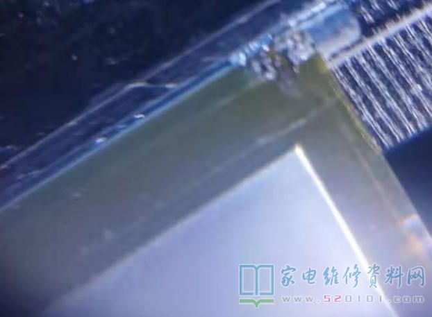 试着在每个电容上涂上焊膏看有没有熔化的,试机几分钟发现并没有一个熔化的,看来是液晶屏内部短路。本来已经判死刑了的。后来发现COF玻璃端有一处像烧焦了一样,通知用户 屏幕损坏,可以死马当活马医将其这个COF处理掉,就是少一块不能看,用户同意就处理,不同意直接让其拿走。