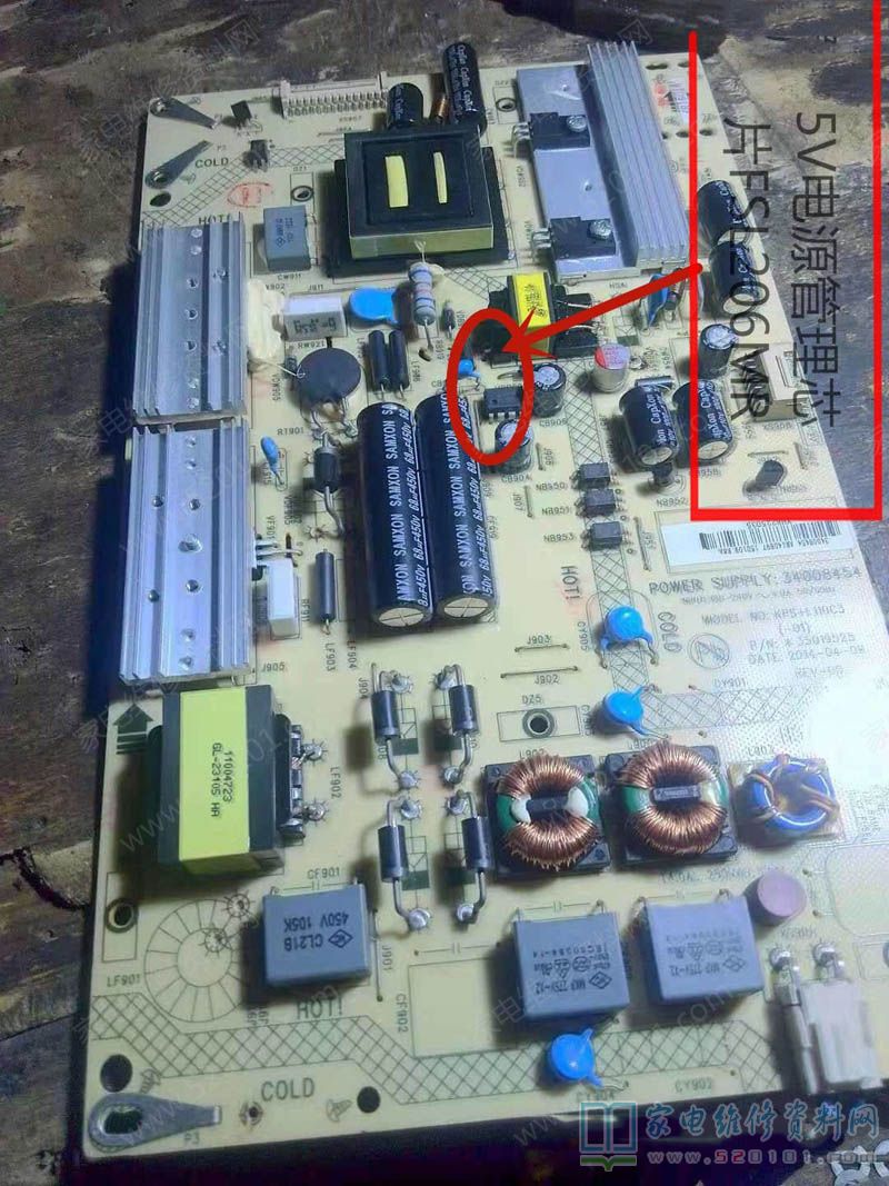 康佳LED49R6610U液晶电视开机三无的故障维修 2022-04-15 19:12:52 阅读 938 次 评论 0 条 摘要: 接修一台康佳LED49R6610U液晶电视,故障表现为开机三无,首先目测电源板保险未断,电容未鼓包。测量大电容两端电压300V正常,测量各组输出电压无,检查5V电源管理芯片FSL206MR,除了5脚电压2 接修一台康佳LED49R6610U液晶电视,故障表现为开机三无,首先目测电源板保险未断,电容未鼓包。测量大电容两端电压300V正常,测量各组输出电压无,检查5V电源管理芯片FSL206MR,除了5脚电压290V外,其它电压都有所波动(指针万用表测量),怀疑后级有短路。检查5V整流管SR360已短路,用功率大一点的FR302代换,开机5V电压有了,插上主板试机正常,故障修复。 版权声明:本文为转载文章,版权归原作者所有,欢迎分享本文,转载请保留出处! 点赞 分享: PREVIOUS:海信TLM4236P液晶电视有图像无声音的故障维修 NEXT:创维37L17SW液晶电视花屏的故障维修 文章导航
