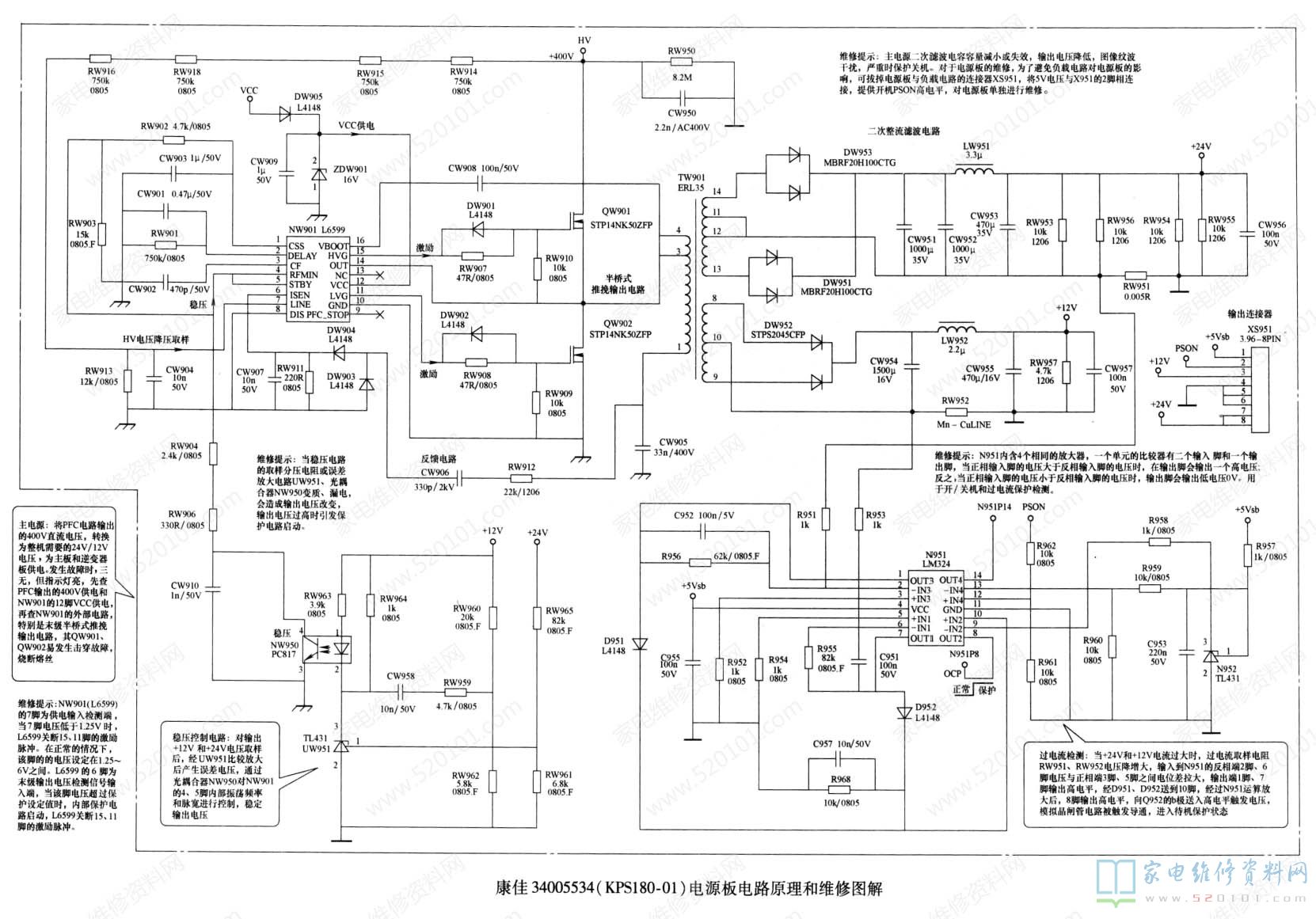 康佳34005534 ( KPS180-01)电源板电路原理和维修图解如图3所示。
