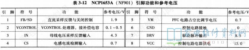 该电源板的集成电路引脚功能和参考电压见表1 ~表3。