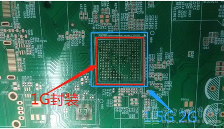 康佳9632平台有三种主芯片,主要区分是内部有1G、1.5G、2G DDR。1G封装见下图红色标注,1.5G和2G封装见下图蓝色封装标注。PCB元件封装相同。1G芯片主要用于康佳LED55K2000-3 LED50K200-2 43等派生机;1.5G芯片主要用于LED65K2000-2等派生机;2G用于55X5-4 70等高档一点的机器;