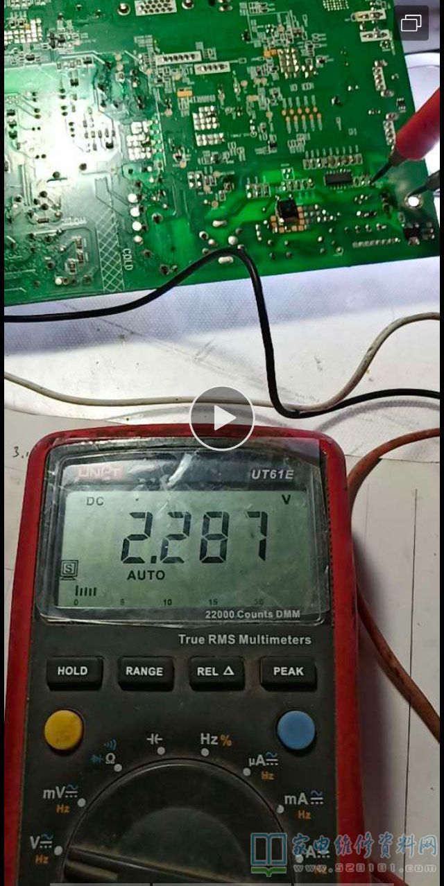接修一台康佳LED32F2000E液晶电视,其机器板号是35017303,背光芯片采用的是OZ9902,通电检查,OZ9902的13脚电压4V。正常2.2V ,什么情况会升高这么多?电压检测154电阻阻值漏电,或者变小,焊下测量正常,一个149k,一个150k,换此电阻后OZ9902的第13脚电压2.2v正常了,电阻下面没有看到有胶,看来不是白胶漏电,真正的是电阻在高压下,电阻质变造成的故障。
