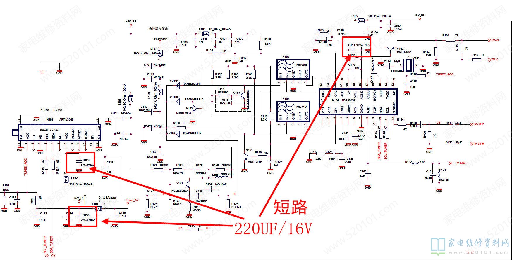 康佳LC26ES60液晶电视白屏的故障维修 2022-06-23 06:57:11 阅读 822 次 评论 0 条 摘要: 接修一台康佳LC26ES60液晶电视( MST9U19B机芯) 其板号是35012465,故障表现为电视白屏,但声音正常,最后经过一番排查发现是C111、C126、C125电容短路导致(均为220uF/1 接修一台康佳LC26ES60液晶电视( MST9U19B机芯) 其板号是35012465,故障表现为电视白屏,但声音正常,最后经过一番排查发现是C111、C126、C125电容短路导致(均为220uF/16V),更换后故障排除。 版权声明:本文为转载文章,版权归原作者所有,欢迎分享本文,转载请保留出处! 点赞 分享: PREVIOUS:飞利浦32PFL3380/T3液晶电视指示灯不亮的故障维修 NEXT:长虹液晶电视ZLS70HI机芯主板维修图解 文章导航