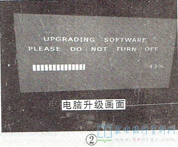接修一台康佳LED49K70A型液晶电视,开机灰屏,屏显“很抱歉,云智能服务已停止运行”,按压电视本机按键及遥控器无反应。此机是康佳公司生产的网上销售的KKTV专用机型。从故障现象看,此故障属于软件故障。故障维修:首先通过本机串号,在康佳技术网站上查找到本机软件编号,如图1所示,然后把本机软件下载并解压到U盘中。需要说明的是,最好选用空U盘,即U盘中不要存有其他内容,以避免升级不成功。最后把U盘插入电视的USB接口中,,按住电视机面板上的“音量+"键不松手,同时给电视上电,当屏显升级英文画面后松手,如图2所示。 升级过程中不能断电,整个升级过程需约10min-20min。升级成功后机器自动重启,故障排除。