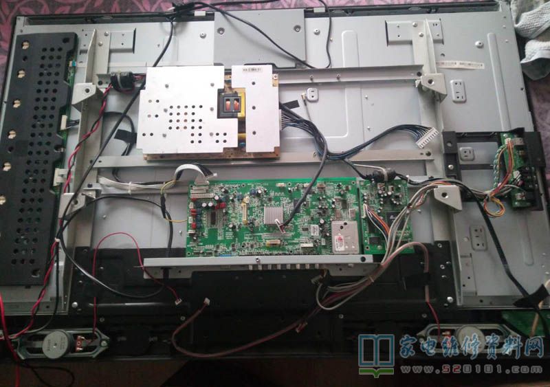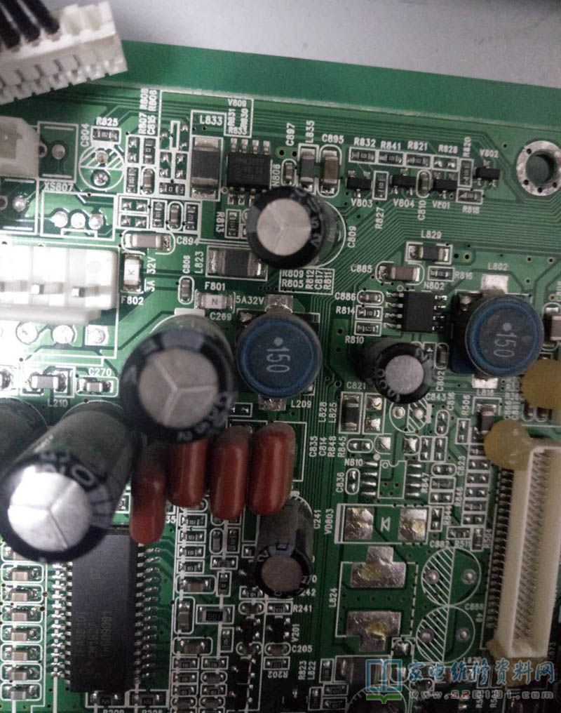 接修一台康佳LC42DS60C液晶电视,故障表现为开机开机,红灯转绿灯,三无,然后自动转回红灯。看来主板问题不大,应该是电源板或高压板问题。经查,电源板输出5V、12V、24V正常,转向高压板,24V有,开启信号也有,从孔里看到背光灯已亮。接下来,目光转向逻辑板。测上屏电压,0.1V,断电测对地电阻,未短路。测量主板上的上屏电压,也是0.1V,上屏控制管前电压为0V,主板插座上12V电压正常。顺电路找到12V保险F801,标注5A32V,前端电压12V,后端0V,原来是这鬼!测后部对地不短路,外接4A玻璃管保险丝试机,保险再次熔断。问题可不好找,烧鸡大法?不敢用!网上找到电路图,发现12V电源有4个用户:上屏电压、音频、USB、高频头。USB、高频头没什么用,但问题有可能在这里。把这两路磁珠L827、L832拆下,试机,翻开一条缝按菜单键,字符居然露面了。