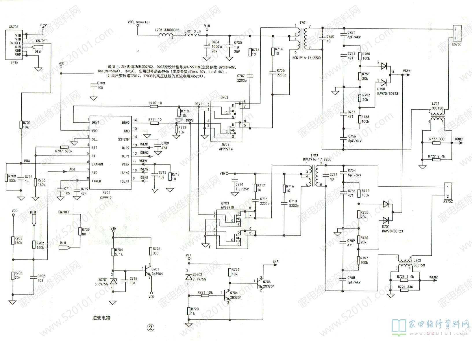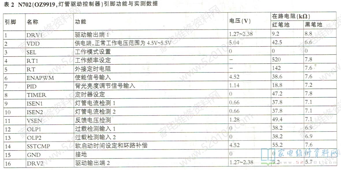 康佳KIP+L048U2C1-01型IP板电路图与实测数据 2022-11-25 18:54:51 阅读 856 次 评论 0 条 摘要: 接修一台康佳液晶电视,该机采用的是KIP+L048U2C1-01板,该型IP板主要用于康佳LC24FS66DC、LC24G80DC等型液晶彩电中,其电路如图1、图2所示,主要IC及逆变功率管的引脚功能与实 接修一台康佳液晶电视,该机采用的是KIP+L048U2C1-01板,该型IP板主要用于康佳LC24FS66DC、LC24G80DC等型液晶彩电中,其电路如图1、图2所示,主要IC及逆变功率管的引脚功能与实测数据见表1~表3。 版权声明:本文为转载文章,版权归原作者所有,欢迎分享本文,转载请保留出处! 点赞 分享: PREVIOUS:海信LED46K360J液晶电视图像抖动的故障维修 NEXT:LG液晶屏LED灯珠主要参数速查一览表 文章导航