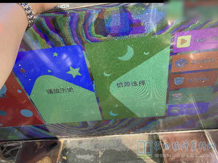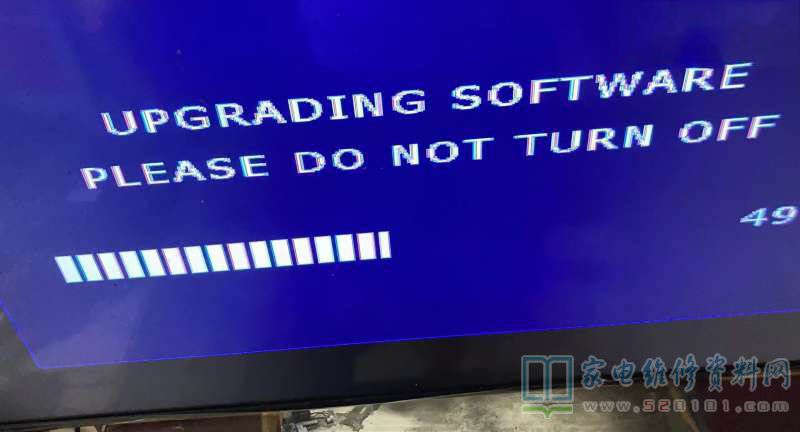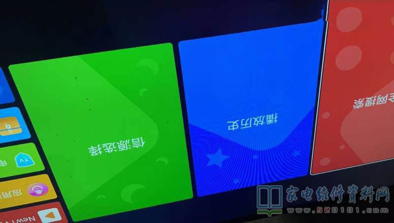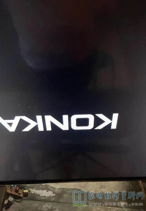 反复试机不开机,结果有一次用音量-打开电视机电源开关,突然亮了,虽然花屏,但是亮了,还挺高兴,马上升级主程序,无效,开机还是显示KKTV,再升级正确的屏参文件,KONKA出来了,不再显示kktv了,也不花了,也不倒影了,终于可以收工了。