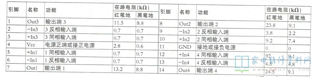 表4、N951(LM324,四运放集成电路)引脚功能与实测电压