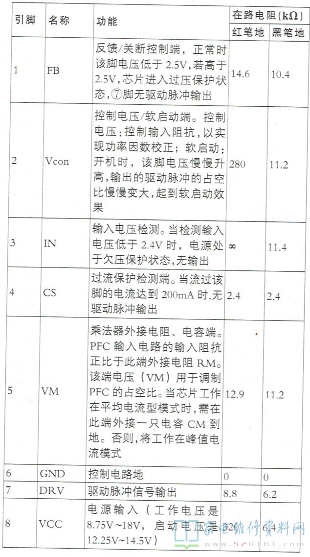 表3、NF901(NCP1653A)引脚功能与实测电压