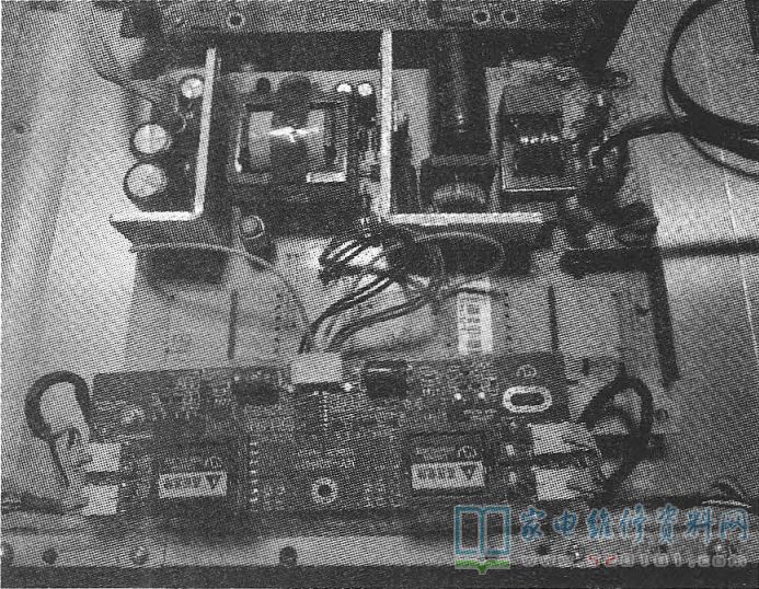 其中一台机器亮一下就黑屏。经检查确认故障在高压板上,没有检查到有损坏的元件,代换高压逆变器后故障依旧,于是直接用万能高压板改装。拆除电源板高压一体板上高压部分的两只逆变器和灯管插座等元件,拆到刚好能把新换的万能高压板放入为止,如图1所示。
