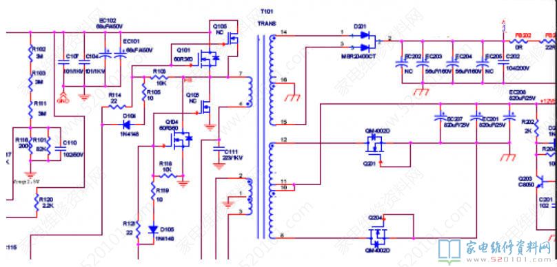此电路图还算比较好找只是不太清晰,该电路用TEA1716T芯片控制PFC+LLC,待机+5VSB由次级+12V经6脚芯片NY6TB降压所得,测量+12v只有1V输出,测12V也没有短路,换光耦817,TL431依然不变,检查TEA1716各脚周围元件,场管,快恢二极管电阻电容都没有问题,该芯片场管都换新的还是故障依旧。