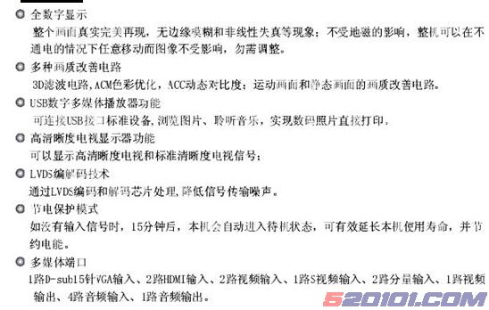 本机为多媒体液晶电视机,采用高亮度、高对比度、高分辨率、超宽视角电视专用高清液晶屏。